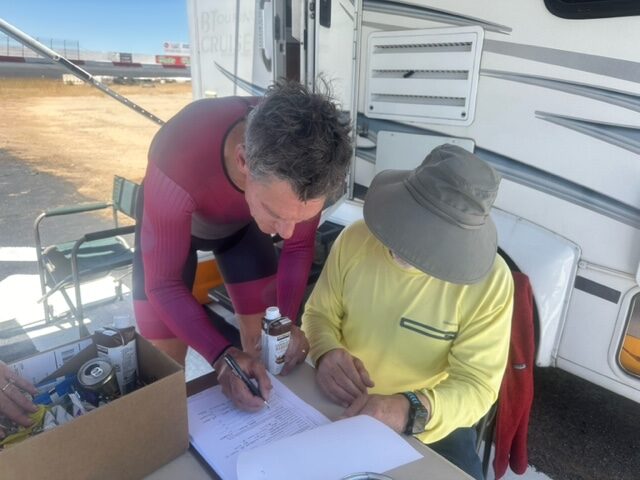The mild pre-dawn wind created a chill in the 58-degree arid desert southeast of Tucson. Not sleeping well always seems to accentuate my sensitivity to the cold, on top of my low geriatric thyroid levels. But, the sun was fixing to come up at 5:30 and we needed to get rolling, or the 200K and 6-Hour segments would be through an even greater degree of annoying heat and brutal wind. The volume of details that need to be attended too, for these attempts, really makes time fly. If I could win the lottery, I would hire a race director, mechanic, and personal assistant to set it all up so I could just ride the bike.