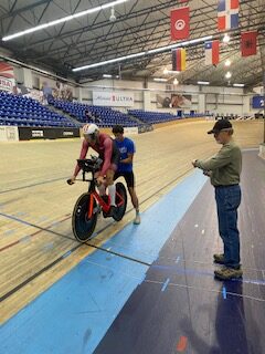 Went back to Carson with significantly more time on the TT bike this time. Didn’t really fancy the thought of 6 intense hours on a 250 track, but I’m not getting any younger so I thought I might as well do it now. No matter how much attention to detail I gave to this project, in the months leading up, there are always a few things that get neglected, but for the most part it went as smoothly as can be expected. My timing officials and support crew were awesome, again. Greg Hemmerlin kept the sideline organized with his son Michael as – literally – the worlds best hand-off man. Not too many endurance athletes are fortunate enough to have a Collegiate national cycling champion doing their moving handoffs! Fabulous kid and an impeccable job. Having Bob Audycki on the sidelines was a real treat, as our friendship goes back almost 40 years and he’s a very lively character!