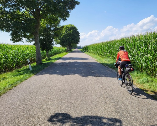 My diet was normal for me. I am vegetarian so I leaned on eggs and cheese for protein. I carried two bottles of water on my bike, with ice whenever it was available. Food in Europe was superb, breakfast in particular. At a lodging in Znin, Poland, just the dessert table at breakfast was about 12 feet long.