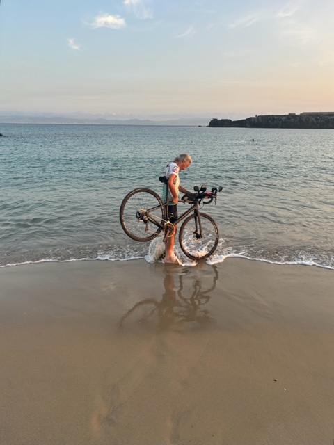 September 22 was the final day. It, too, was challenging. I encountered a rock field and blocked roads. I had to find my way around them in the moment. After nearly eleven hours of cycling, I arrived at the gate to Isla de las Palomas in Tarifa, Spain, at 7:32 PM, as the evening wind rose. In all, from Arctic wind to windy Tarifa, from the solstice to the equinox, I cycled 4329.5 miles, farther than either of my flights to and from Europe. I was ready to rest.