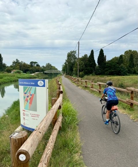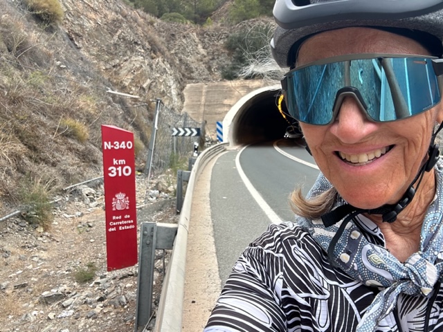 Spain was the hardest part of the trip. I had planned a route that veered somewhat inland from the coast to save time, but a local cyclist warned us that the inland route was difficult. Indeed, one day’s route had 17 miles of hilly gravel. At the last minute, instead of embarking on that gravel route, we decided to return to the coast. At 11 PM, we created a route for the next morning. We generally enjoyed the N340 as a through secondary highway, but it blended with the fast highway A7 as we got to the south of Spain. Neighborhoods were cut off from one another by the highway. To get through them, we had to cross the highway numerous times on pedestrian bridges. We never knew when a route would be blocked by road construction or by a gated community. Indeed, there were several route failures that required reroutes on the fly.