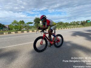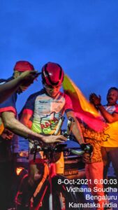 Preparation for the ride was started about 2 months before the start of the ride. The crew was formed and we had 10 members in the crew. Sudhakar Narsegowda, Rajashekar Gadad, Abhijith Y V, Girish Kolegudu, Abhiraam S, Harish Kalammanagudi, Mohan Puttaswami, S Subhash Lagali, Dhanashekar, Pritish Abraham. The race route and the strategy were drawn up over the course of 2 months. Thanks to my coach Marcus Kinzlbaeur, the training schedule for the ride was on track. Logistics for the ride were co-ordinated with various team members taking up different responsibilities which enabled us to be at the start line on 8 October 2021.