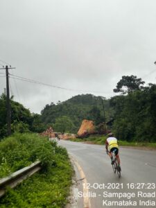 Having recovered on the health front the ride was enjoyable. The roads were good, however, the rain continued and it was another day with wet weather. The elevation profile was difficult having to do the 24 kilometer climb from Sampage to Madikeri. A sleep/massage break of 1 hour 30 minutes was taken at Sullia before starting the climb. Having made it past the climb, we crossed the Kaveri River and then made it past Mysuru and rode through rain from Maddur till Bengaluru to complete the ride at 5:13 am.