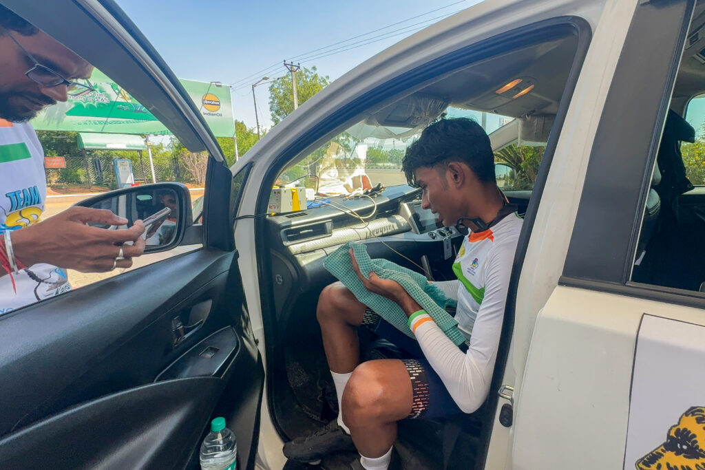 I followed a high-carb, high-electrolyte diet. Regular hydration was maintained using electrolyte mixes and water. I consumed bananas, peanut butter sandwiches, energy gels, dry fruits, and rice meals during stops. Every few hours, I had small portions of fruits and protein snacks to maintain steady energy levels.