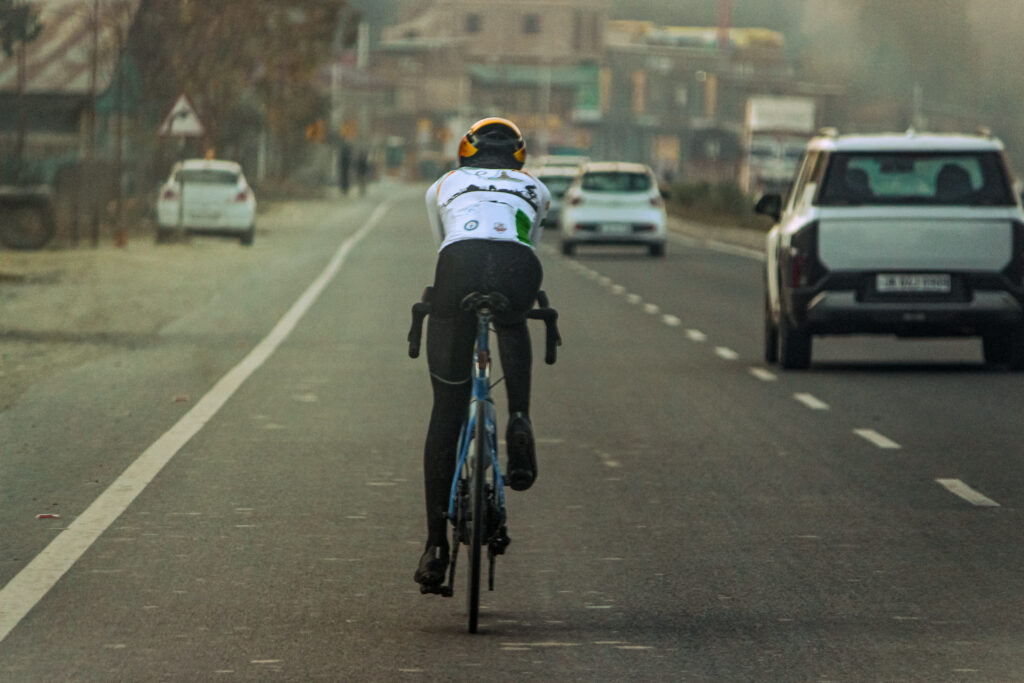 The hardest section was through Tamil Nadu where temperature peaked during the day above 40°C. After entering Madhya Pradesh, temperatures dropped suddenly, and in Hyderabad and Jammu & Kashmir I had to cycle through dense traffic. Long headwinds and sleep deprivation during night sections tested both mental and physical endurance. Climbing towards Srinagar after days of fatigue was also extremely challenging.